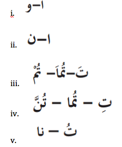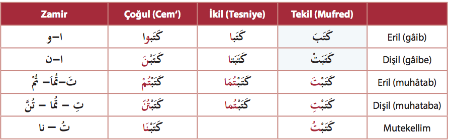 i. gâib ii. gâibe iii. muhâtab iv. muhataba v. mutekelim |