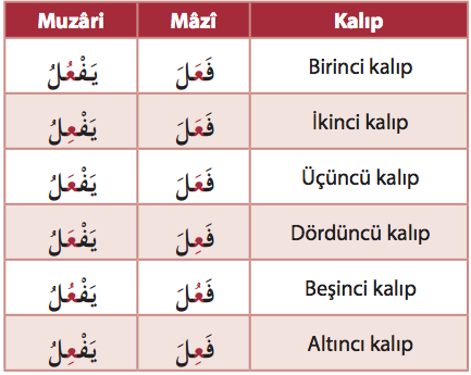 Mâzî ve muzâri fiillerin kalıplara göre sadece ‘aynu’l-fiil’i değişir. |