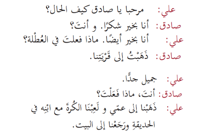 (مَرحَبًا. أَنا إسماعيل .أَدْرُسُ الطِبّ. أَسكُنُ فی سَکَن بِأَنْقَرة. سَكَني قَريب مِنَ الجامِعَة)