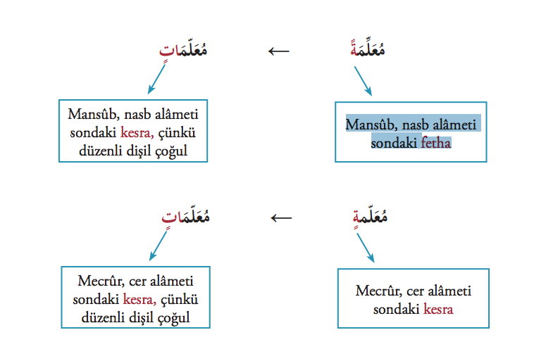 sözcüğünün i'râbıyla ilgili olarak aşağıdaki açıklamalardan hangisi/hangileri doğrudur?i. Ref alâmeti sondaki damme ii. Mansûb, nasb alâmeti sondaki kesra, çünkü düzenli dişil çoğul iii. Mecrûr, cer alâmeti sondaki kesra, çünkü düzenli dişil çoğul iv. Mansûb, nasb alâmeti sondaki fetha