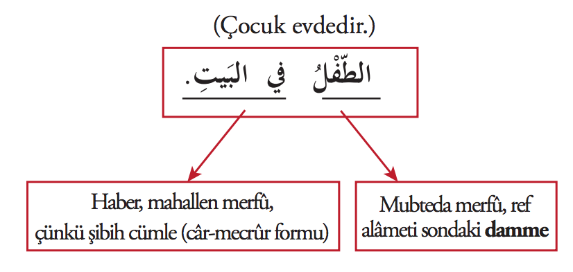 Mubteda belirtisiz bir isim olarak değil de belirtili bir isim olarak kullanıldığında her zaman cümlenin başında gelir. Ancak mubteda belirsiz bir isim, haber de şibih cümle olursa, bu durumda haber mubtedadan önce gelmek zorundadır. Bu cümlede de haber şibih cümle mubteda belirsiz bir isim olarak gelmiştir. Mubteda damme ile merfûdur.Yani ref alâmeti dammedir. Bu doğrultuda sadece i ve ii doğrudur.