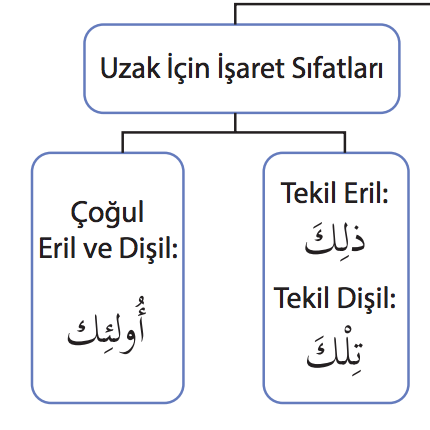 Aşağıda verilen işaret sıfatlarıyla Arapça tercümeleri doğru olarak hangi şıkta eşleştirilmiştir? Uzak işaret sıfatları; 1. Çoğul eril ve dişil 2. Tekil eril 3. Tekil dişil a.
