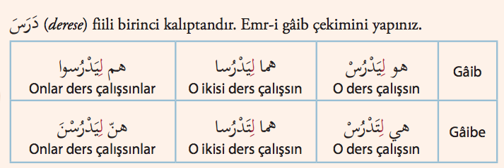 fiilinin "emr-i gâib- tesniye- gâibe" durumu aşağıdakilerden hangisidir?