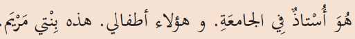 "Bu, eşim Ahmet, o üniversitede hocadır ve bunlar da çocuklarım. Bu, kızım Meryem. O okulda öğrencidir. Bu ikisi İbrahim ve İsmail." metninde kadına dair bir bilgi yoktur.