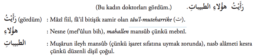 يَكْتُبُ (yazıyor) fiilinde, gizli zamir olan (هُوَ: o-erkek-) veتَكْتُبُ (yazıyor) fiilinde, gizli zamir olan (هِيَ: o - kadın-) fâ‘il durumundadır.