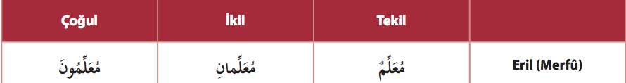 II. : Fâ‘il, merfû, ref alâmeti sondaki damme.