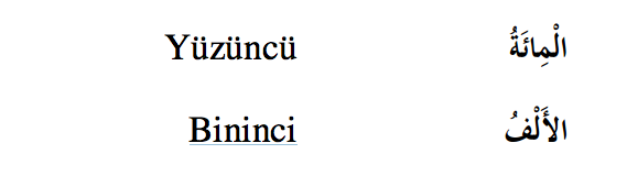 | 4. Atıflı (ma’tûf) sayılar | d. 11’den 19’a kadar olan sayılar. |