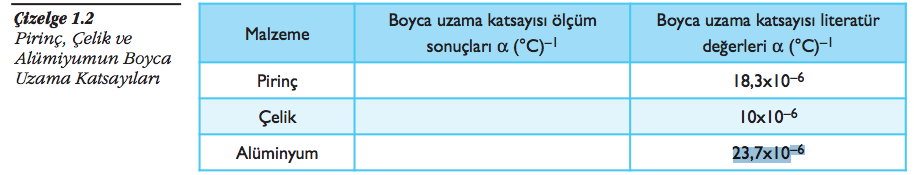 Her iki eşitlikte de yer alan a (alfa diye okunur) boyca uzama katsayısıdır ve birimi (°C)-1 ’dir.
