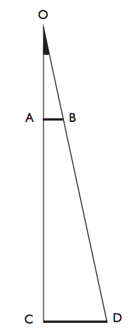 Benzer üçgenlerden yararlanarak uzama miktarının hesaplanması için yandaki OAB ve OCD üçgenlerinin benzerliği doğrultusunda;