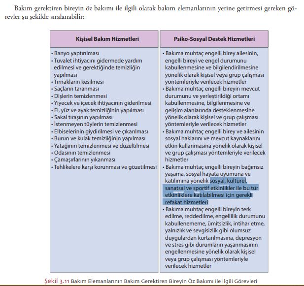 - Bakım gerektiren bireye yönelik davranış ve sorumlulukların neler olduğunu belirler.