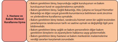 Aşağıdakilerden hangisi bakım gerektiren bireylerin Hastane ve Bakım Merkezi Kurallarına Uyma sorumluluklarındandır?