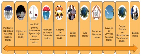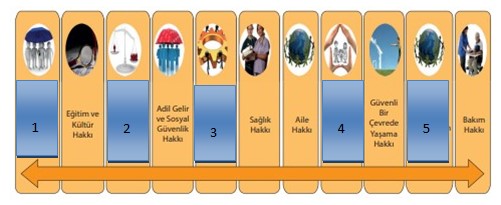 Yukarıda verilen şemada, "sosyal yardım ve hizmetlerden yararlanma hakkı" hangi numara ile gösterilmektedir?