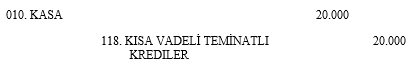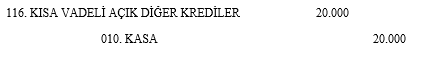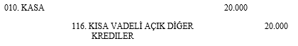Banka, borcu tahsil ettiğinden dolayı 010. Kasa Hesabını borçlandırmış ve 116 Kısa Vadeli Açık Diğer Krediler Hesabını alacaklandırmıştır.