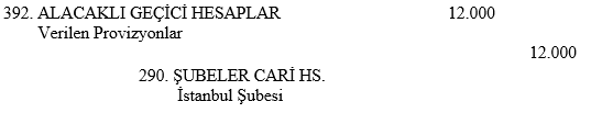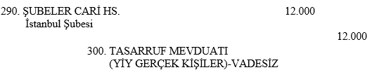 İstanbul şubesinde vadesiz hesabı bulunan bir müşteri aynı bankanın Kocaeli şubesinden ?12.000 para çekmiştir. Kocaeli şubesinin ilgili işleme ait yaptığı kayıt aşağıdakilerden hangisidir?