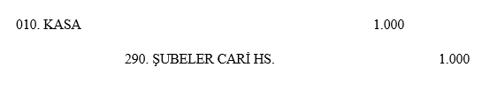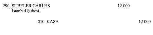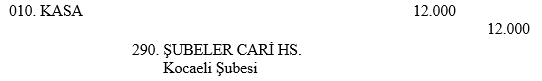 Müşteri, hesabının bulunduğu bankanın diğer bir şubesinden para çekmek istemiştir. Bu doğrultuda ödemeyi yapan Kocaeli şubesi yevmiye kaydını, 290. Şubeler Cari Hesabını-İstanbul Şubesi borçlandırarak ve 010. Kasa hesabını alacaklandırarak yapmıştır.