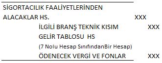 Sigorta primi ile ilgili yasal olarak hesaplanan vergiler ise “Ödenecek Vergi ve Fonlar Hesabı” nın alacak tarafına kaydedilir.