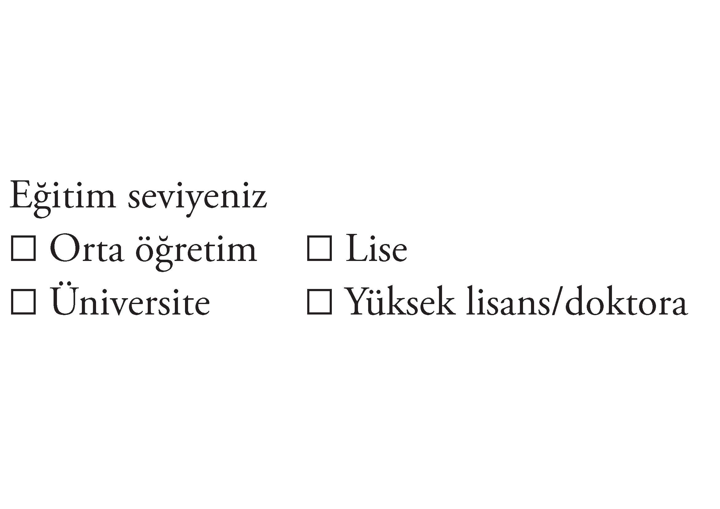 Yukarıda gördüğünüz anket sorusu örneği türü aşağıdakilerden hangisidir?