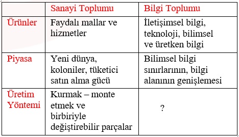 Bilgi Toplumunda üretim yöntemi olarak Robotlar-Ekipler kullanılır.