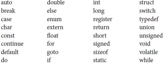 - Aşağıda verilen kelimeler ANSI C’nin anahtar kelimeleridir (key words) ve değişken ismi olarak kullanılamaz: