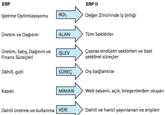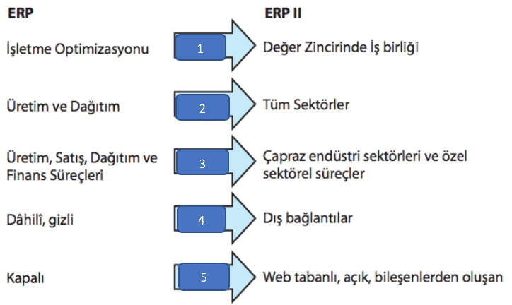 Yukarıda verilen ERP ve ERP II geçişinde "mimari" hangi numara ile gösterilmiştir?