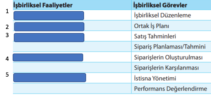 Yandaki CPFR’nin İşbirliksel Faaliyet ve Görevleri şemasında verilen numaralardan hangisi "uygulama " faaliyetini göstermektedir?