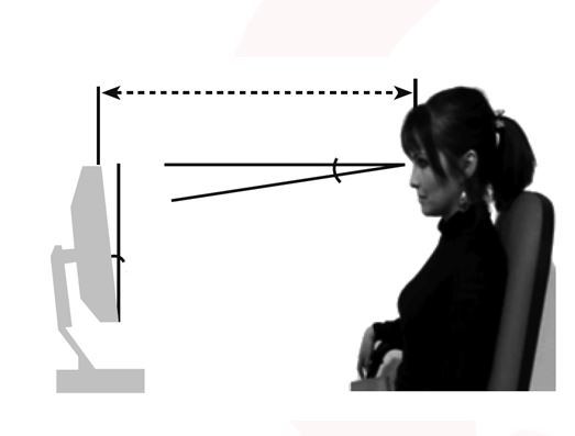 Göz ve beden sağlığı için ekran ve kullanıcı arasındaki ideal mesafe 45-70 cm. dir. Ekran ile kullanıcı arasındaki mesafenin 45cm.nin altında kaldığı durumlar-da boyun, omuz, sırt, kol ve gözlerde sağlık açısından risk oluşmaktadır. Bu uzaklığın önerilen ideal uzaklığın üst limiti olan 70cm.den fazla olması durumunda ise, boyun, omuz ve gözleri zorlama ve tekrarlandıkça vücuda zarar vermesi söz konusudur.