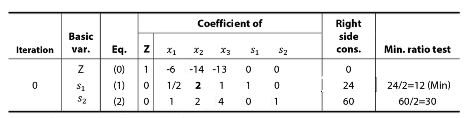 - Iterate to the next basic feasible solution by determining the entering and leaving variable using the rate of improvement on the objective value. Return to step 2