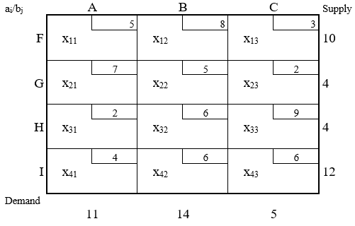 x11 = 10, x21 = 1, x22 = 3, x32 = 4, x42 = 4, x43 = 5,