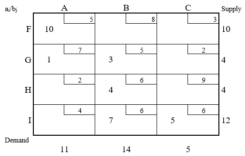 For the given cost matrix, how much is the total transportation cost calculated by Northwest Corner Method solution? (all costs in Turkish liras)