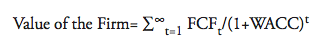 - Capitalizing the forecasted free cash flows at the calculated WACC to determine the firm value