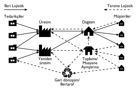 ".... lojistik ağlarındaki akış kullanılmış, ömrünü tamamlamış, arızalı ya da istenmeyen ürünlerin kullanıcılardan toplanması ile başlamaktadır."