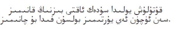 Arap kökenli Uygur alfabesinde /a/ sesi için kelime başında hemze ve elif harfinin birlikte kullanılmasından yararlanılmıştır.