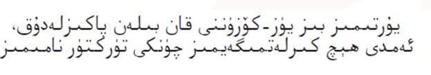 “Гoмумтөрки тeл X гaсыргa кaдәр куллaнылыштa йөргән” cümlesinin Türkiye Türkçesindeki karşılığı “Genel Türk dili X. asıra kadar kullanılmıştır”dır.
