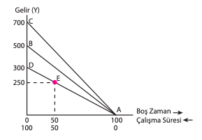 Birey zamanın tümü boş zaman şeklinde değerlendirildiğinde A noktasında bulunulacak, bu noktada hiç çalışmayan bireyin doğal olarak geliri sıfır olacaktır.