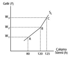 Grafikte yer alan "Piyasa Emek Arz Eğrisi" hangi noktadan sonra "geriye kıvrımlı" hale gelir?
