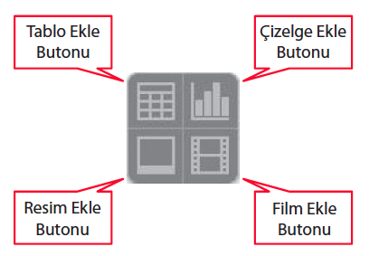 İçerik Ekleme İkonu aşağıda yer almaktadır. Görüldüğü gibi bu ikonda Metin Ekle Butonu bulunmamaktadır.