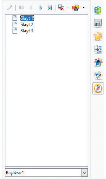 Standart yüklü bir Apache OpenOffice Impress yazılımında Boş Sunu türünde açılan bir sunuda üç tanesi yukarıda, bir tanesi de sayfa altında olmak üzere dört adet Araç Çubuğu bulunur. Yukarıda sağ tarafta bulunan araç çubuğu aşağıdakilerden hangisidir?