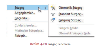 Süzgeç sekmesi ile yana açılır pencerede aşağıdakilerden hangisi gösterilmez?