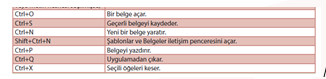 Belgeyi yazdır kısayol tuşları aşağıdaki seçeneklerden hangisinde doğru olarak verilmiştir?