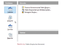Tablolar, Sorgular, Formlar, Raporlar |