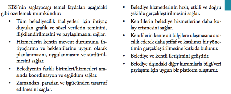 Belediyeler hizmetlerini planlarken ve sunarken sadece kendi faaliyetleri sonucu elde ettikleri veri- - yet gösteren ve vatandaşların temel ihtiyaçlarının karşılanmasında önemli görevler yapan diğer kamu kurumları tarafından üretilen ve/veya yönetilen ve-