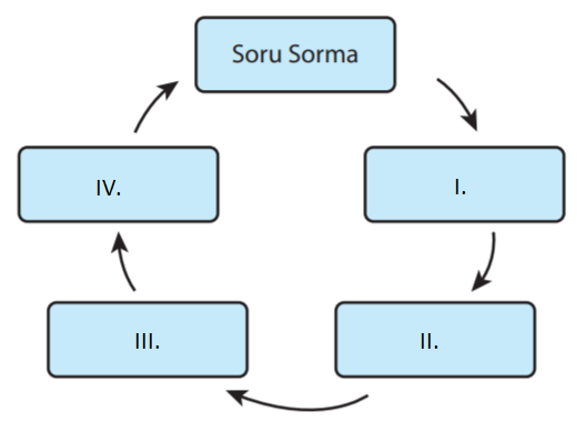 Sorgulayarak öğrenmenin döngüsel sürecini gösteren yukarıdaki diyagramdaki I, II, III ve IV nolu boşluklara sırasıyla aşağıdakilerden hangisi gelmelidir?