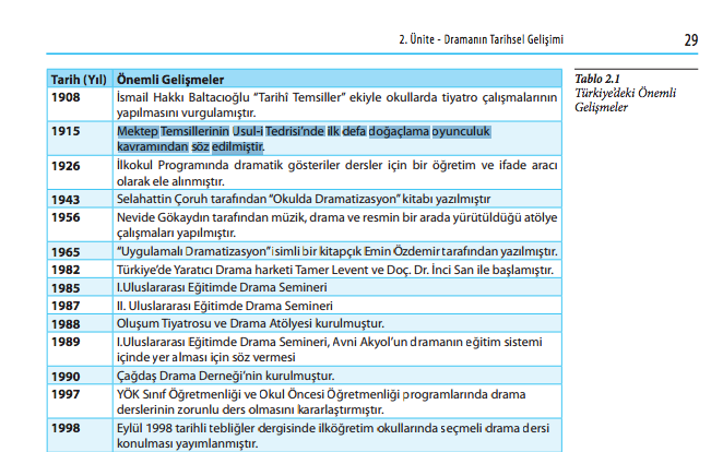 Eylül 1998 tarihli tebliğler dergisinde ilköğretim okullarında seçmeli drama dersi konulması yayımlanmıştır |