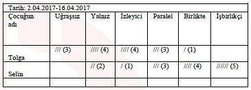 Selin 15 gözlemden 9’unda grupla etkileşimli oyun oynamıştır. |