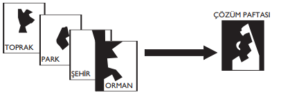 Mc Harg’ın “Design With Nature” isimli kitabında ortaya attığı bu kuram şekilde verildiği gibi coğrafi bilgi sistemlerinin temelini oluşturan katmanlama ve üst üste çakıştırma mantığının ilk modellerindendir.