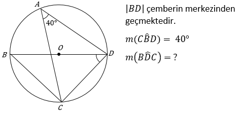 Çapı gören çevre açının ölçüsü 90°’dir. m(BCD) açısı 90°’dir.