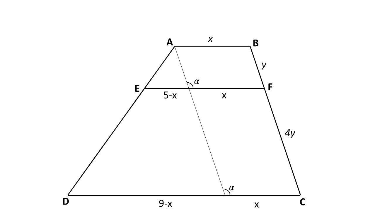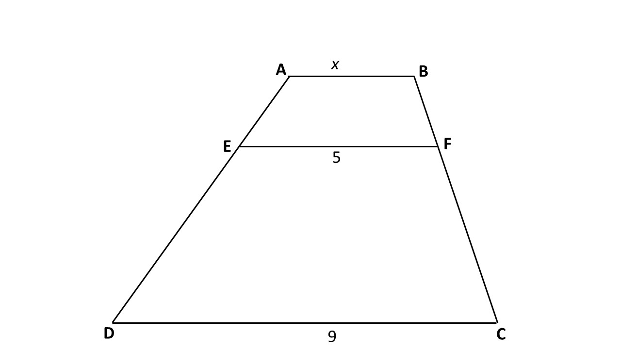 ABCD yamuğu için [AB]//[CD]//[EF], |CF|=4|BF|, |EF|=5 ve |AB|=9 birim ise x nedir?