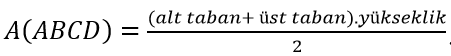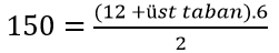 Alanı olan bir ABCD yamuğunda alt taban uzunluğu 12 metre yükseklik 6 metre ise üst taban uzunluğu kaç metredir?