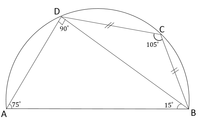Aşağıdaki yarım çemberde |BC|=|CD| ve olduğuna göre