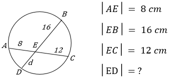 Çemberin iç kuvvet özelliğinden │AE│. │EC│=│DE│ .│EB│ => 8.12=│DE│.16 => │DE│ =6 cm’dir.